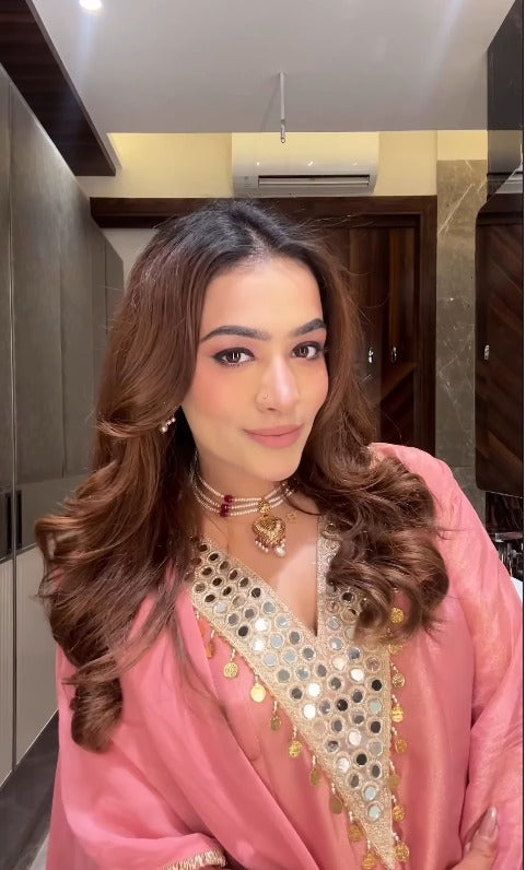 Graceful Embroidered Mirror Work Kurti Palazzo Ensemble