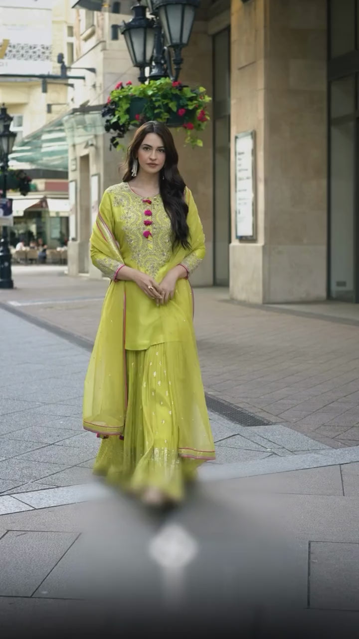 Ivory Mustard Yellow Embroidered Pallazo Set