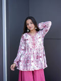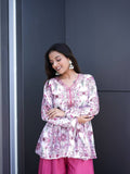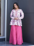 Step into effortless elegance with this charming floral printed peplum kurti paired with solid pink palazzo pants.