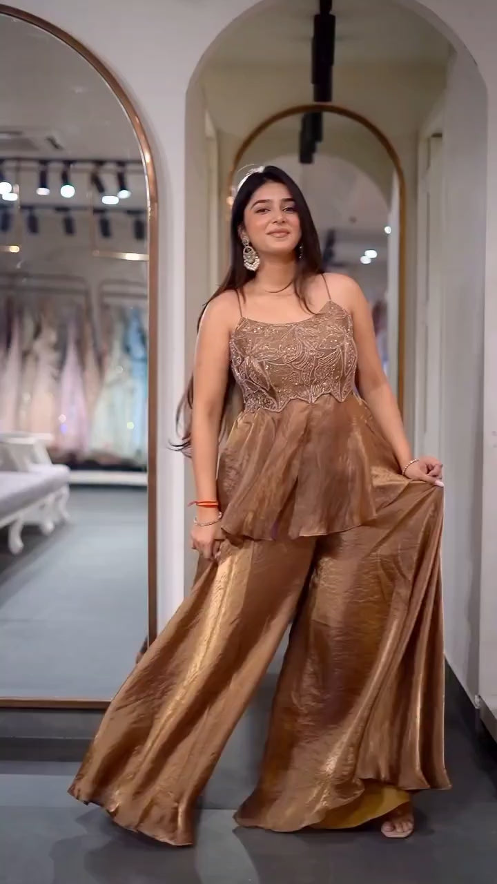 Step into effortless elegance with this stylish peplum palazzo set, designed to make a refined yet modern statement.