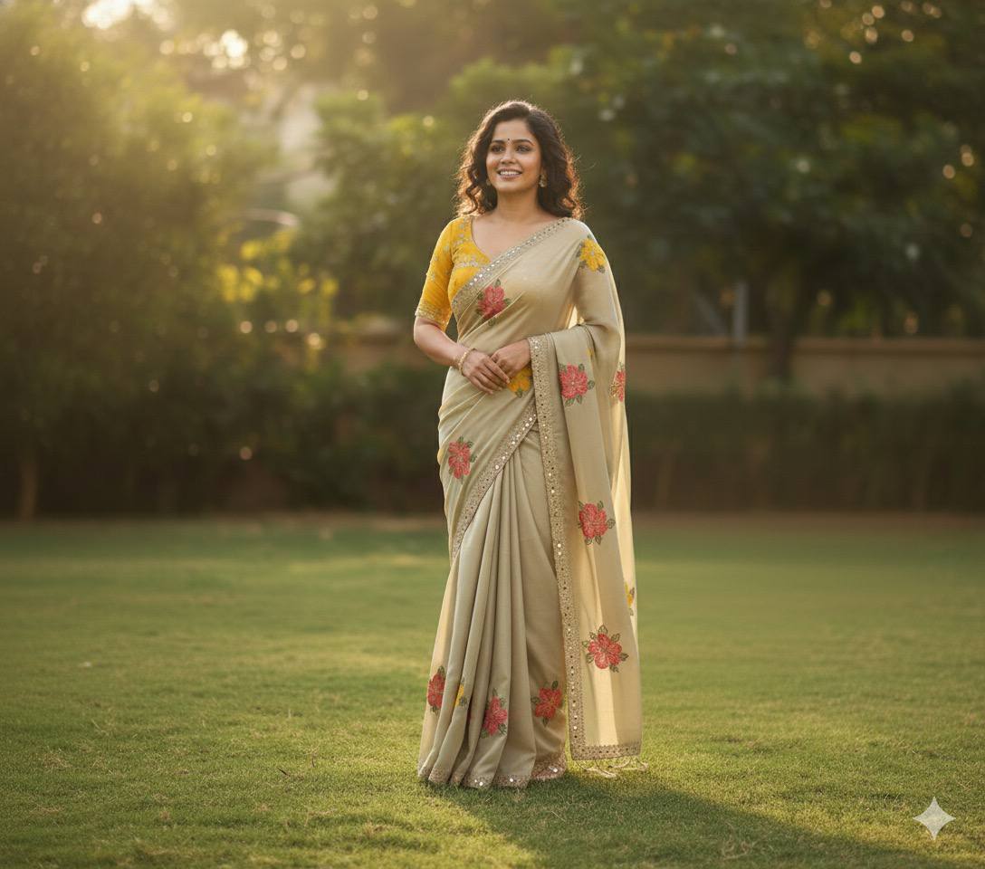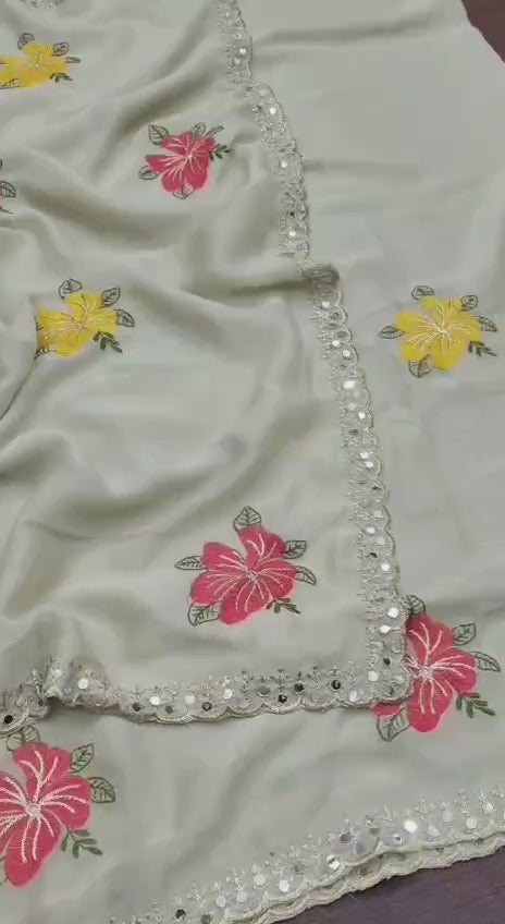 Ishika Designer Viscose Rangoli Saree with Floral Embroidery and Real Mirror Work by AG Export
