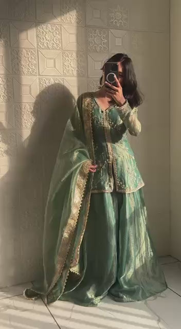 *Dupatta Fabric*:Pur Fendi Silk With Four Side Embroidery 5 mm Sequence & Coding Dori Work Lace Border