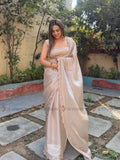Premium Tissue Silk Saree with Pearl Dori & Golden Lace Border