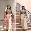 Presetting Western Style Chinon Silk Shrug With Skirt Set For Festive Wear